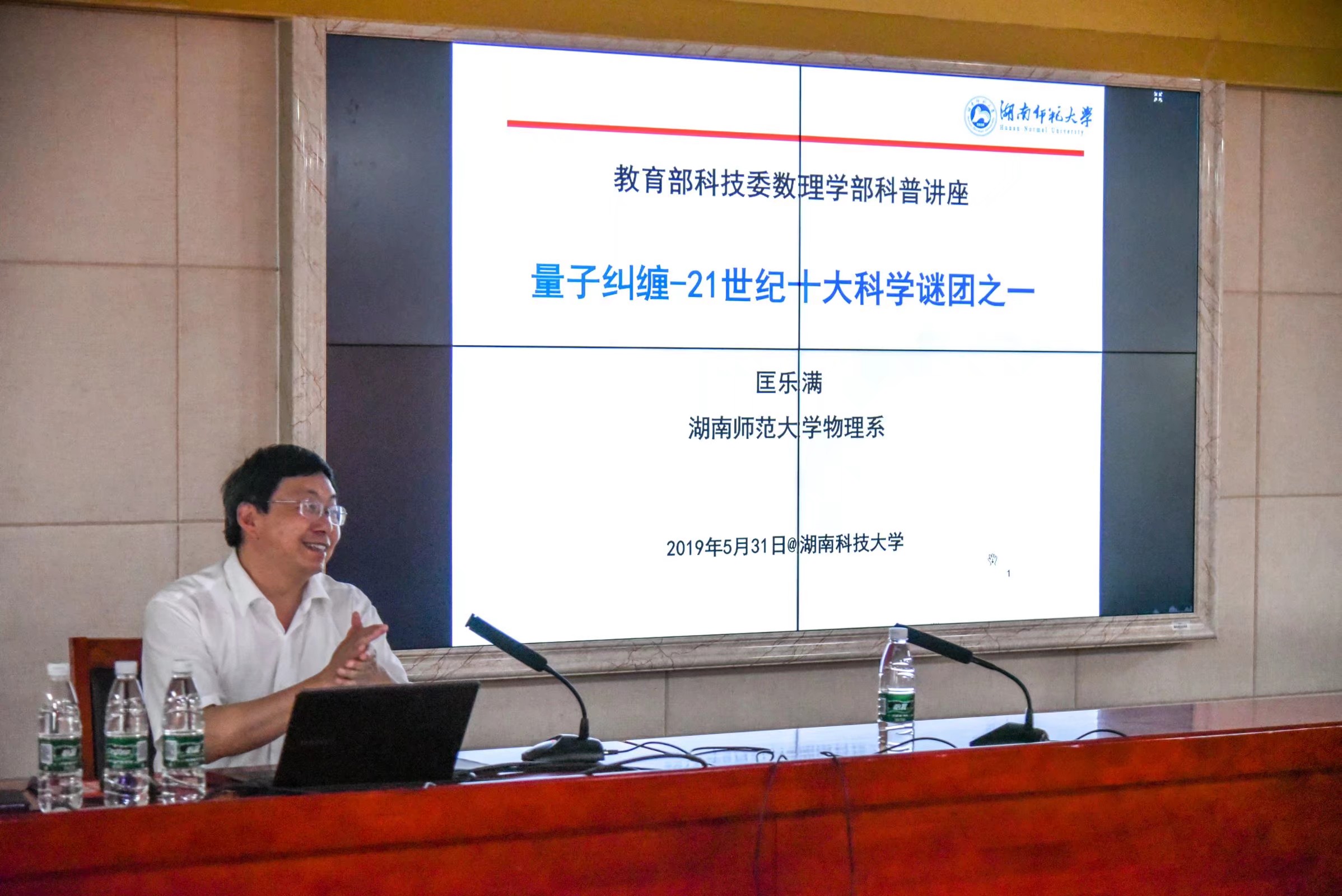 量子物理概念的建立过程为什么被称为“盲人摸象”?21世纪十大科学谜团之一的量子纠缠有何奥秘?幽灵一般的量子纠缠如何融入现代需求……5月31日下午3:00,国家杰出青年科学基金获得者、湖南师范大学副校长匡乐满教授应邀来世界杯官网作题为“量子纠缠——21世纪十大科学谜团之一”学术讲座。讲座于立功楼A3-2教室举行,世界杯官网执行院长王俊年教授主持,世界杯官网部分老师和学生到场聆听。