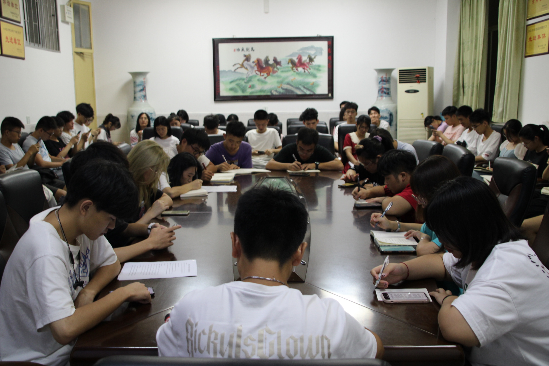 为了确保21级新生军训工作的顺利展开,世界杯官网第十九届学生会主席团以及学生会部长们于2021年9月17日晚上九十节课在物理楼会议室参加有关军训工作安排会议。