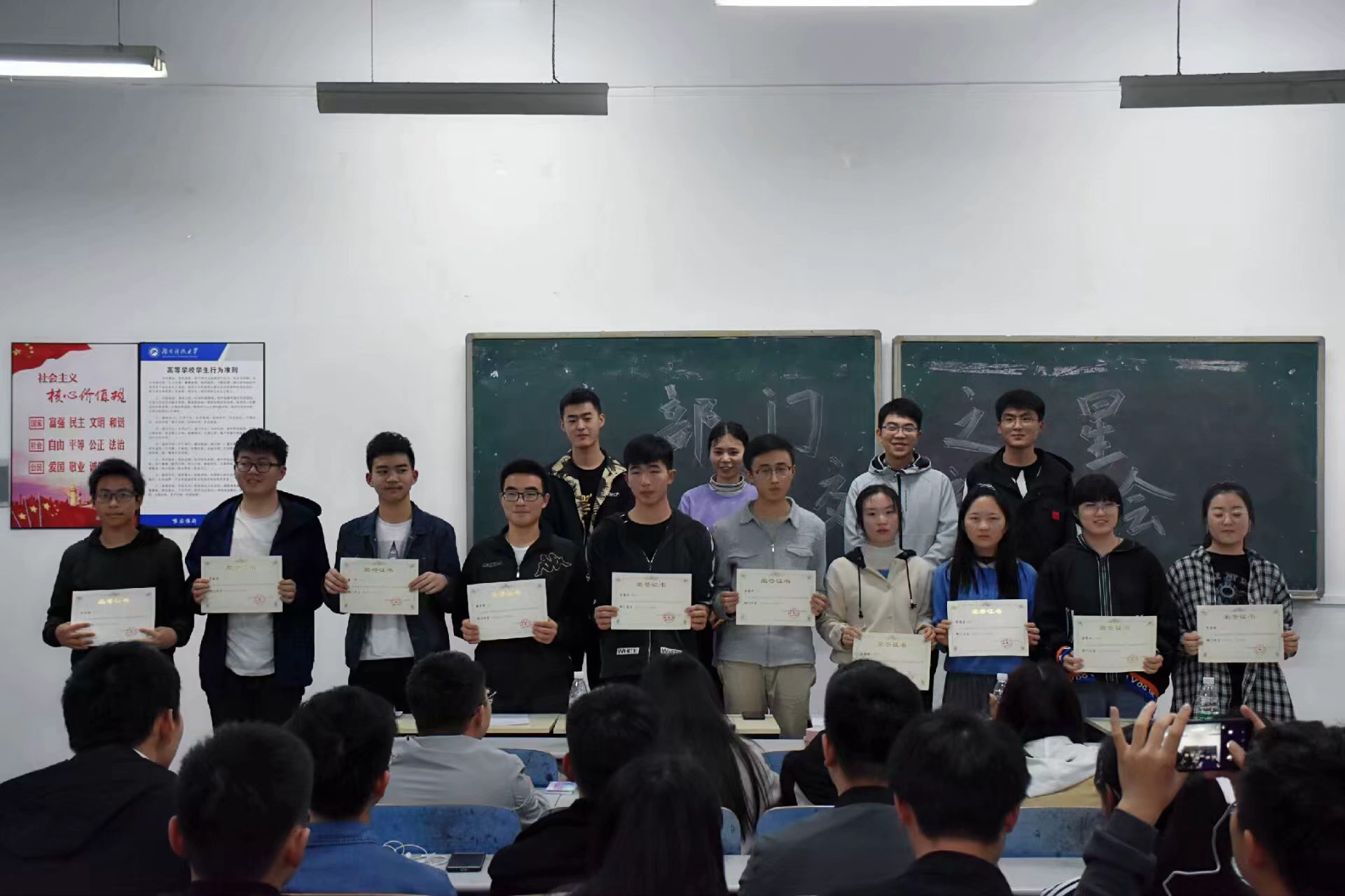 本次大会以问答为主体展开,在10位部门之星依次介绍自己和部门的工作及状况后,主席团和其他部门委员对部门之星进行提问。问题涉及部门之星对工作的理解、建议以及对主席团工作的建议,意在让各学生会成员互相交流经验,提高部门工作效率及质量。学生会各成员在此拉锯式问答中良方共享、不足互改、共同进步。世界杯官网学生会成员上下齐心致力于打造一个更好的服务于学院和学生的学生会。学生会主席张煜翀在总结时说道:“一时间的意气风发抵不过长时间的摸爬滚打,希望大家在面对挑战时不忘初心,将学生会变得更好更强。”大会最后,四位主席团成员为部门之星颁奖。