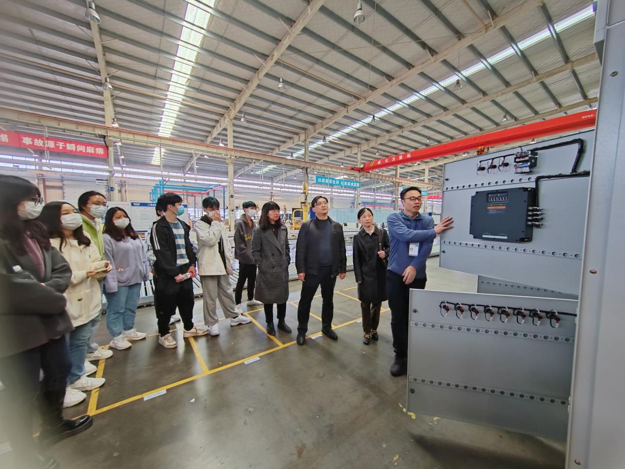 接下来,由产业园管理人员带领,同学们进入产业园基地正式开始专业见习。同学们先后参观了产业园基地的环网柜自动化生产线,柱上断路器装配区、智能化低压开关柜自动化生产线和微型断路器自动化生产线等主要工作区域,在老师和管理人员的介绍下充分了解了其主要运作原理、方案,以及相关的电子器件。