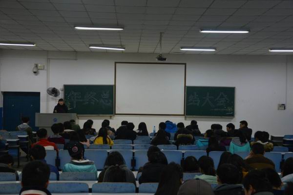 大会开始,由学生会主席吕刘鹏作简短发言,并宣布年终总结大会正式开始。紧接着,15个部门的部长或副部按抽签顺序依次上台作了年度工作总结。在总结过程中,大家分别从常规工作、特色工作、部门建设等方面介绍了本部门开展的主要工作,回顾与反思了这一年部门工作中存在的主要问题,并针对这些问题提出了相应的整改措施。最后,孙婵老师对此次总结大会作了精彩的点评,针对各部门汇报过程中存在的问题与不足提出了许多中恳的意见和建议,对此同学们感觉受益菲浅。