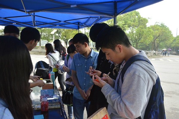 签名后过来刚看完展板的范强是物理学院14级的学生,他办理了生源地助学贷款,但是对于还款不太了解。“虽然对我来说还早,但知道到时候知道具体怎么还款了,也了解了“征信”的知识,蛮有收获的”看完后他说道。他非常看重诚信看重信用,平时小小的的约自习约吃饭在他看来都是关乎诚信的大事。“不管是爽约还是被爽约,都会让人觉得整个人都不好了,潜意识里就觉得说了就要做到。”