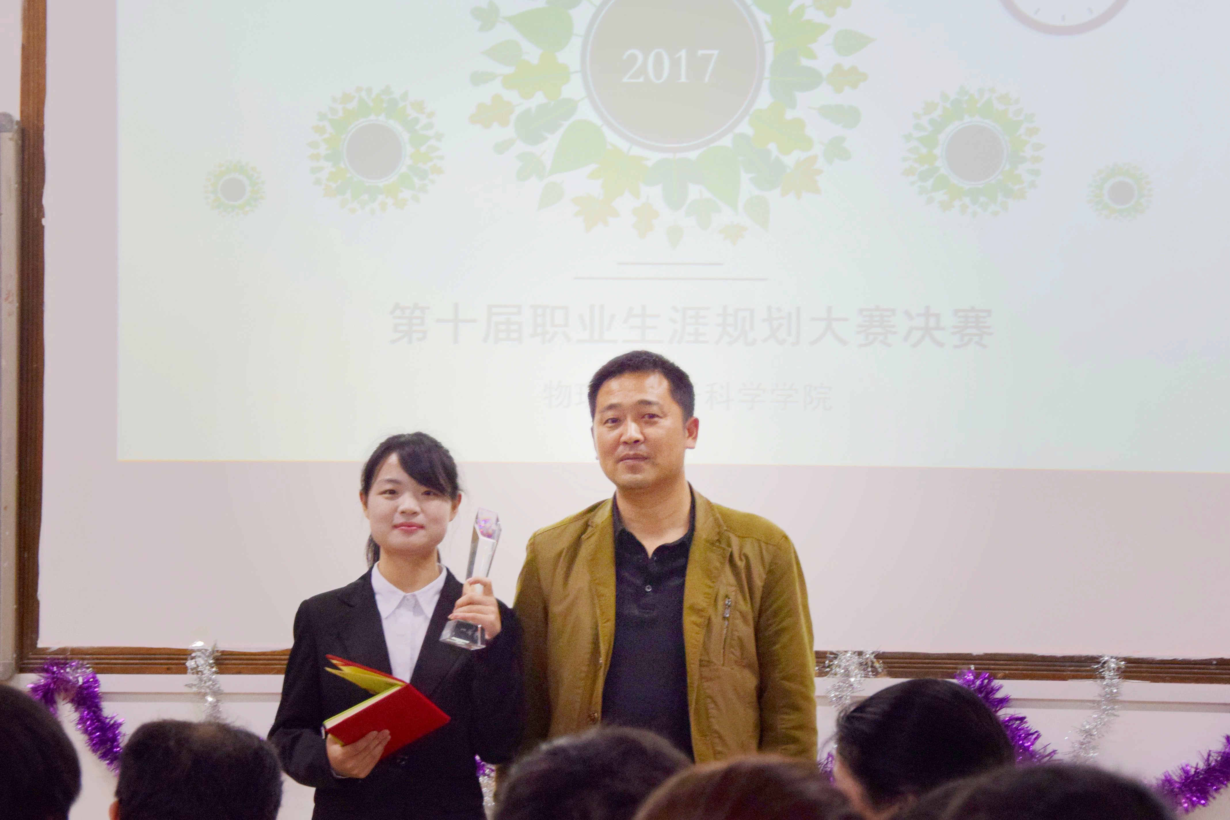 本届职业生涯规划大赛,经初赛、复赛的激烈角逐,最终乐沁馨同学凭借出色的表现赢得了评委和观众的好评,一举摘取决赛桂冠。决赛最后评委为获奖选手颁奖,并发表讲话。党委副书记杜鑫充分肯定了选手们的表现,他勉励广大学生要高度重视职业目标的设计和追求,冷静思考、慎重选择,同时,个人职业规划也要与个人的学业规划相结合。