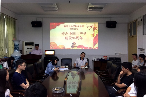 为纪念建党96周年,2017年6月30日下午4:30,美加墨世界杯官方网站党员大会于物理楼二楼会议室顺利召开。本次大会到场的有美加墨世界杯官方网站党委书记周文革同志、党委副书记杜鑫同志、学工办老师孙婵老师,以及美加墨世界杯官方网站五十七名学生党员。党委副书记杜鑫同志主持本次会议。