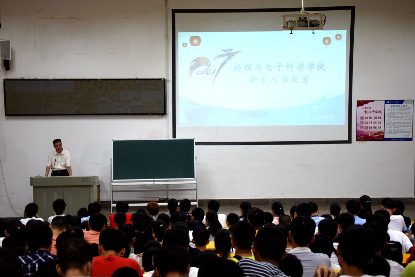 青春添活力,旧貌换新颜。9月10日上午,物电学院举行2017级新生入学教育大会,给全体新生上了入学第一课。物电学院党委书记周文革、副书记杜鑫出席大会,学工办老师孙婵、张华、高淑兰一同出席,党委副书记杜鑫主持了大会。