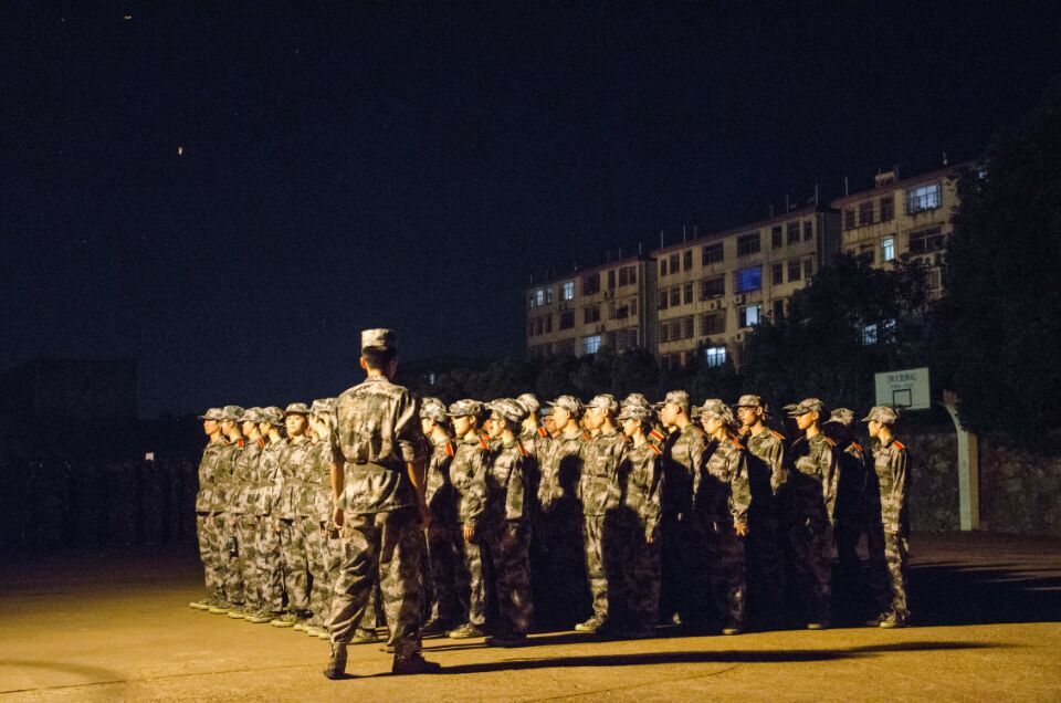 夜幕笼罩下,世界杯官网2017级全体受训学员庄严肃穆,迅速列队集合。“报告!四营三连集合完毕,请指示!”随后,党委副书记杜鑫面向全体2017级受训学员发表讲话。杜鑫副书记首先强调了军训的必要性和重要性,要求全体学员学习人民军队坚强意志和优良作风,锻炼吃苦耐劳精神、增强集体荣誉感;他希望同学们珍惜军训的机会,积极投身到军训中,不畏苦难。他向同学们提出了“七过硬”的要求,期望他们积极配合教官训练,圆满完成军训,以优异的成绩向党的十九大献礼。