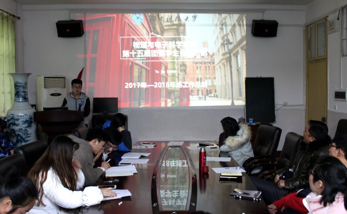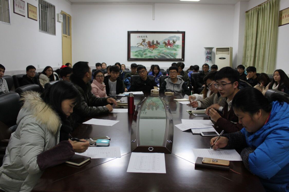 反思总结,辞旧迎新,2017年12月25日下午4:00,美加墨世界杯官方网站团委学生会2017年终总结大会于物理楼二楼会议室举行,院党委副书记杜鑫以及学工办孙婵老师、张华老师、高淑兰老师出席,第十五届团委学生会全体学生干部参加了此次大会,大会由学生会主席徐志鹏主持。
