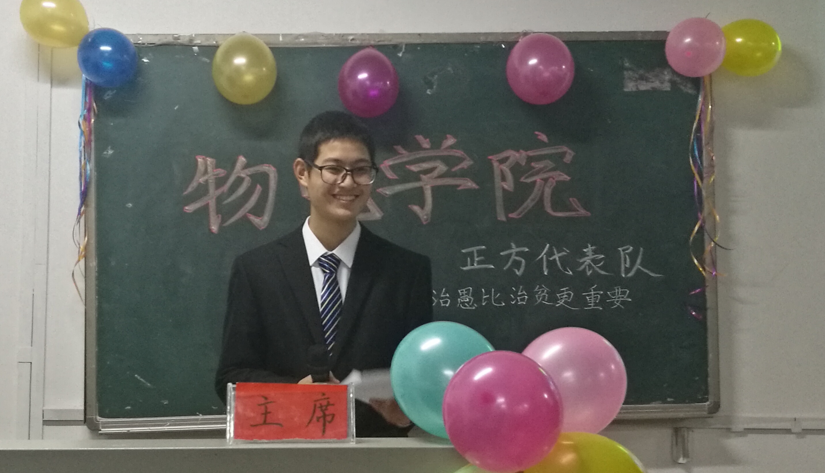 晚7:00,比赛正式开始,主持人首先介绍了到场嘉宾、评委以及两支参赛辩论队。在正方光电一班、反方物理二班辩论队自我介绍后,比赛进入了开篇理论环节。正方一辩围绕“治愚比治贫更重要”的观点,环环相扣、循序渐进地阐明了正方的观点。反方一辩也不甘示弱,旁征引博、妙语连珠地提出反方“治贫比治愚更重要”的观点。接下来盘问阶段和自由辩论更是扣人心弦,反方二辩铿锵有力的声音、条条有理的逻辑击中正方要害,而正方三辩一个接一个的反问让反方无力回击,辩论中双方逐渐拉开差距。在激烈的辩论过程中选手们不失风度、始终面带微笑,他们良好的行为规范、出色的口才让观众们为之折服。比赛结束后,信息与电气工程学院2014潘志伟同学对辩论赛进行了总结,他首先肯定了双方选手的精彩辩论,但同时也指出了一些不足之处,并对选手们寄予希望。最后,反方队伍获得此次比赛的胜利,正方队伍廖逸萱同学获得“最佳辩手”的称号,17级物理二班获得冠军,17级光电一班获得亚军,17级光电二班、光电三班、物理三班获得优胜奖。颁奖仪式结束后,比赛圆满落幕。