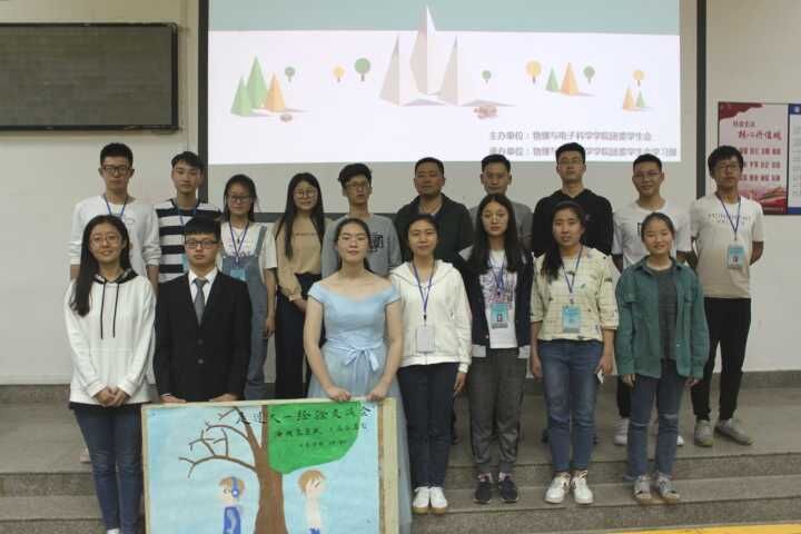 2018年4月18日晚7:00,由物电学院团委学生会举办的主题为“走过大一经验交流会”在美术楼成功举行。院党委副书记杜鑫,年级辅导员张华,助理辅导员李乐,团委第一副书记樊鹏鹏和交流会的三位主讲人石腾基,胡清梅,周鑫宇作为嘉宾来到了交流会现场。17级全体学生参加了此次经验交流会。