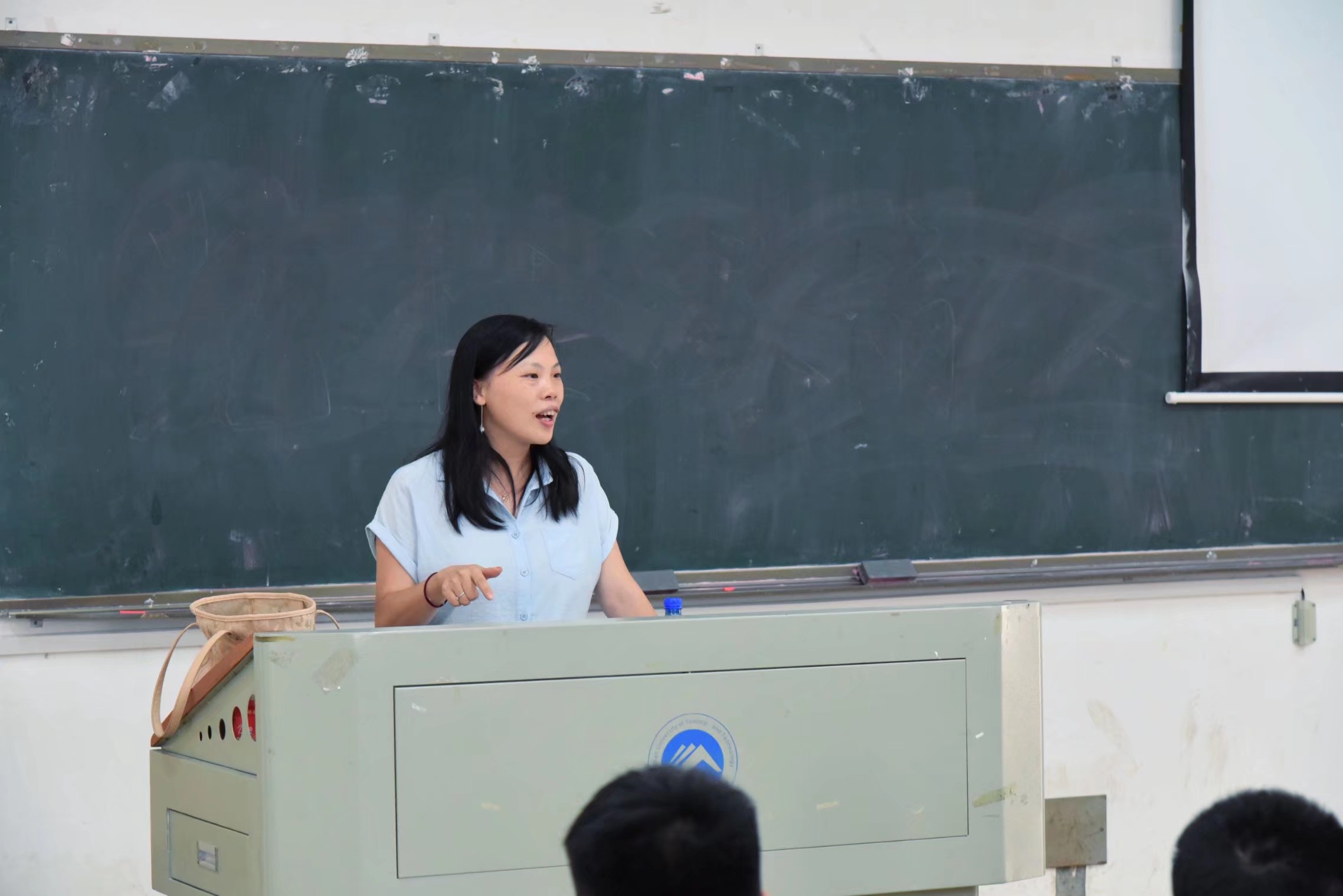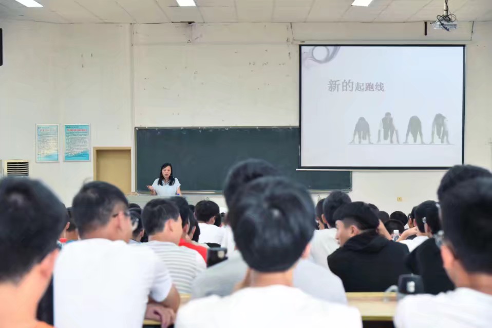孙婵老师向同学们强调了大学在每个人成长过程中的重要意义:大学是一个全新的起跑线,要建立目标,告别昨天,重新起航。紧接着孙婵老师从“大学是什么?”“大学要做什么?”“怎么做”等一系列问题展开,并结合自己十多年的工作经验,以及往届同学的真实经历,耐心地为新生们答疑解惑,使同学们深刻了解大学生活。特别是对身心健康、安全问题、学风问题、个人成长等大家关心的问题进行了强调,希望同学们能在大学四年各方面都得到成长,以梦为马,不负韶华。